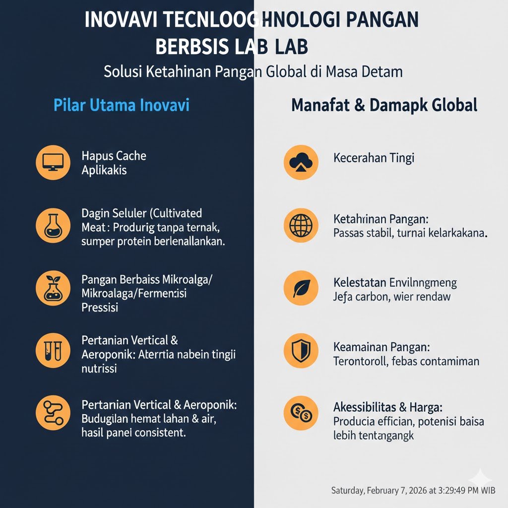 Ketahanan pangan global merupakan isu krusial yang terus menjadi sorotan di tengah pertumbuhan populasi dunia yang kian pesat. Proyeksi menunjukkan bahwa pada tahun 2050, populasi dunia akan mencapai sekitar 9,7 miliar jiwa. Peningkatan ini tentu saja membawa tantangan besar dalam memenuhi kebutuhan pangan yang berkelanjutan dan bergizi bagi seluruh umat manusia. Metode pertanian konvensional, meskipun telah mengalami banyak kemajuan, mungkin tidak lagi cukup untuk menghadapi tekanan ini secara efektif. Oleh karena itu, inovasi teknologi pangan, khususnya yang berbasis laboratorium, muncul sebagai harapan baru untuk mengatasi krisis ketahanan pangan di masa depan.