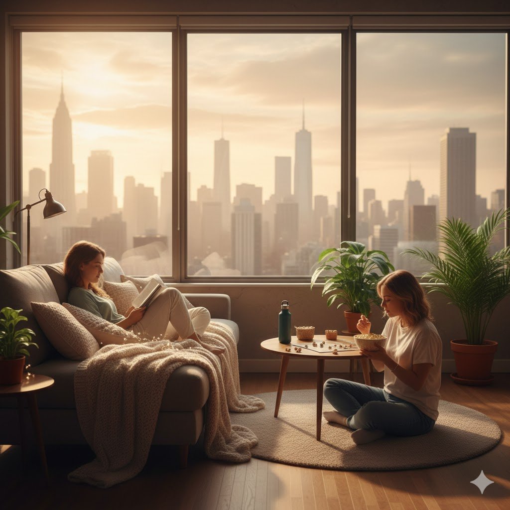 Bagian terpenting dari staycation adalah menikmati waktu luang tanpa harus terbebani jadwal padat. Manfaatkan fasilitas kamar atau apartemen Anda sebaik mungkin. Siapkan daftar film atau serial yang sudah lama ingin ditonton, bawa buku favorit yang belum sempat dibaca, atau unduh game yang seru untuk dimainkan bersama pasangan atau keluarga. Anda juga bisa membawa board game atau kartu remi untuk sesi permainan yang menyenangkan. Ciptakan suasana nyaman dengan membawa bluetooth speaker untuk memutar musik relaksasi, atau bawa lilin aromaterapi untuk menciptakan suasana spa pribadi. Ini adalah momen untuk memanjakan diri tanpa harus mengeluarkan biaya ekstra untuk tiket bioskop atau arena bermain.
